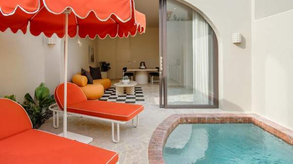 Interior aficionados will note airy whitewashed walls, plenty of pastel accents, travertine touches and marble finishings adorning indoor-outdoor living at its best. The set-up is primed for those seeking to work, play and rest, ideal for freelancers and remote creatives who yearn for accommodation that feels akin to home.