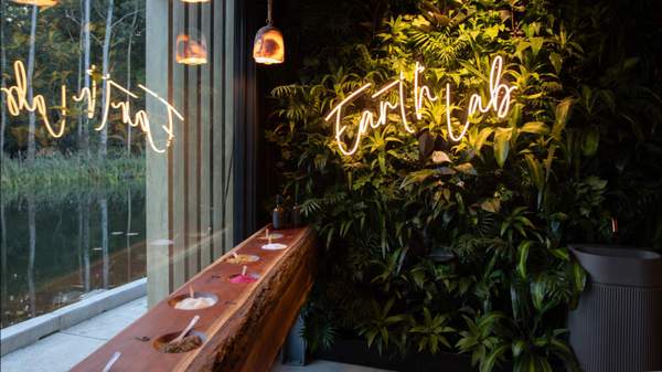 Inspired by earth, air, fire and water, the spa's lean into the elemental isn't lighthearted. Centred around a contemporary circular structure, the bathhouse rests on a tranquil lake's edge immersed in nature. Think turtles in the water and native birds in the trees. Then, hidden within the structure's external form, a 16-sided hexadecagon design offers a sacred bridge between the earth and the divine, ensuring your relaxation experience is even more transcendent. Stepping inside, a spiritual encounter takes shape.