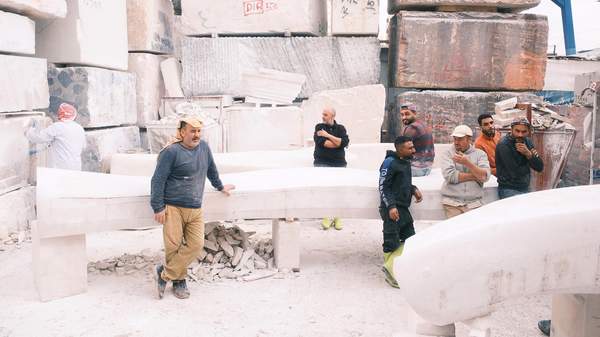 Before you even enter the gallery itself, the exhibition opens with two major site-specific works that remake the NGV International's Forecourt and Waterwall. Wunambal Gaambera/Worrora artist Angelina Karadada Boona will realise her most ambitious work to date, with her signature Wandjina figure reimagining the Waterwall in glowing light. Meanwhile, Lebanese-French artist Najla El Zein presents a major outdoor limestone sculpture. Made from stone quarried outside Beirut and carved by master artisans — sit, touch, rest and recline before you head inside.