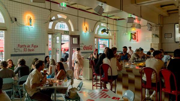 A cheeky selection of margaritas includes a spicy version with jalapeño blanco, a seasonal frozen variety, a Lager-ita that combines a classic margarita with a Corona beer, and a Watermelon Coco Jalapeño margarita with coconut tequila and lime. The venue maintains its retro-diner vibes with a distinctive colour palette and tile details, while a section of the restaurant has been reimagined as a dedicated takeaway space for grab-and-go tacos. A new private dining room, inspired by the haciendas of Mexico, is located downstairs and can accommodate up to 20 people.