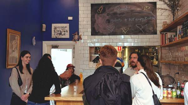 Like Carlito's, with its unassuming storefront on Collingwood's Stanley Street. It's marked only by a cheeky electric blue signboard bearing a graffitied smiled face, and the windows are lined with Cielo sodas. Yet, the eggplant parmigiana sanga — a special-turned-mainstay dressed with pesto and red sauce, topped with a slice of prosciutto cotto — always sells out by noon.