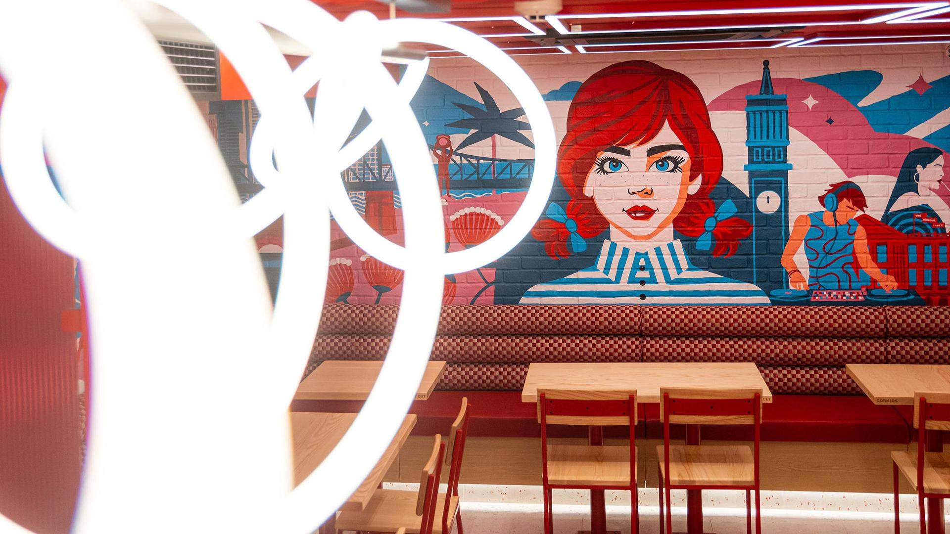 Spanning two brightly coloured levels, this huge Wendy's highlights the brand's ambitions to take over Aussie fast food.