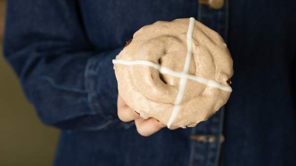Meanwhile, the hot cross cinnamon scroll features a light, fluffy scroll dough infused with spiced brown sugar, cinnamon and plump sultanas. Glazed with vanilla sour cream and topped with a cinnamon cross, these special edition baked goods are bound to give your Easter long weekend a sweet lift.