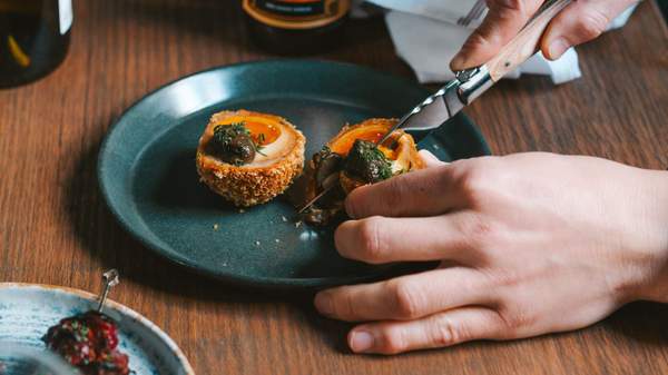 Reed House takes the humble Scotch egg to a whole new level. Inspired by the soft, savoury eggs that top ramen, these eggs are cured in soy and vinegar then wrapped in pork sausage and deep-fried to order. The dish is finished off with mushroom ketchup, a nod to the condiment's origins, creating a perfect balance of savoury, salty and rich.