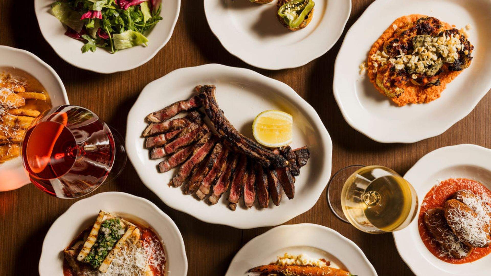 Starters and snacks go beyond just meat, and include the likes of oysters with blood orange dressing, grilled scallops with seaweed butter and red prawn tartlets. There's also Yorkshire pudding with whipped goat's cheese, eggplant croquettes with sugo and grilled flatbread with cauliflower and smoked onion puree.