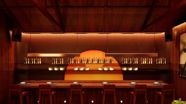 Behind the eight-meter, orange-hued, vinyl-backed bar, Bar Manager Joshuiea Scott will be pouring specialist sakes, highballs and cocktails. Signature drinks include the Hana Nashi with Roku Gin, rose water, lemon and pear, the Ginza Girl, which blends Red Shiso Grey Goose with Burmutton Sake Dry Vermouth, and the Shogun, which is a tangy mix of lemon, yuzu, ginger beer and green tea.