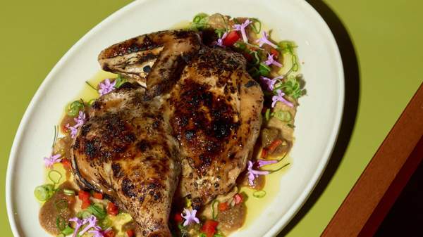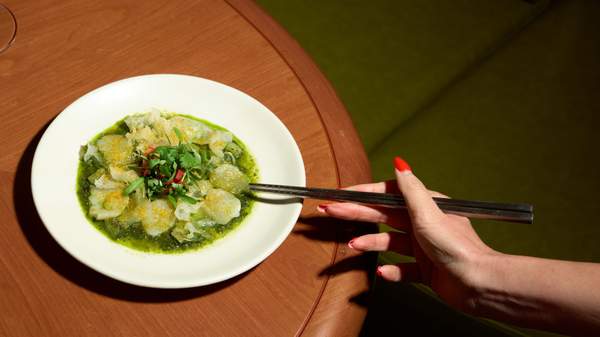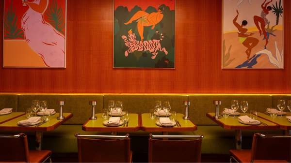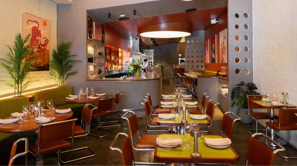 The neo-Southeast Asian restaurant channels the energy, rhythm and flavour of 1970s Bangkok with a nostalgic retro fit-out, non-stop spinning vinyls, and bold and fresh ingredients. Design agency Brandworks has done a stellar job at bringing their vision of a 'stylo milo' design (a Singaporean slang term for something that is effortlessly stylish, fashionable and cool) to life. Glass bricks at the entrance filter the streetlight into a soft glow, vibrant and colourful canvases are eye-catching and alluring, and the olive leather banquettes are comfortable and inviting. Vinyl DJ decks have a prime position on the bar, from which inventive cocktails such as the Wild Tyga with tom-yum mezcal, rhum agridolce, mandarin cucacao and agave, and the Ceylon Alexander with coconut rum, Licor 43, Ceylon Tea and cream, are served.