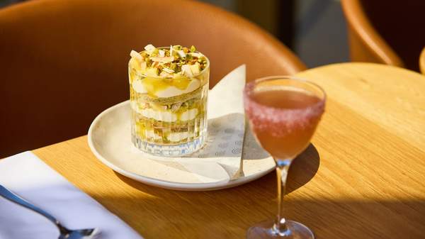 Alba's on-site restaurant, Thyme, is offering a limited-time Christmas menu that stars a trifle made with pistachio, mango and white chocolate — perfectly paired with a candy cane martini (gin, lemon and bitters with Alba's own candy cane–infused vodka, shaken and finished with a crushed candy cane rim).