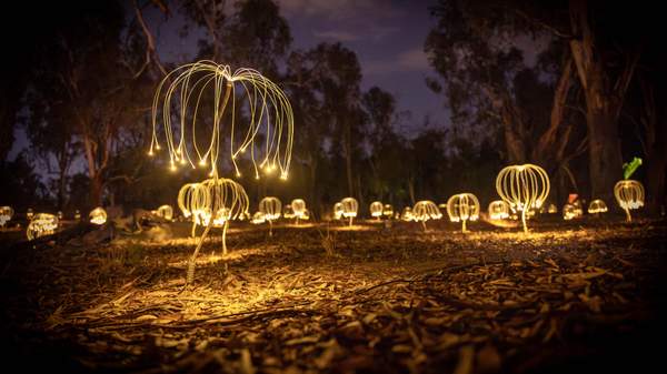 Today, the Biennale's legacy lives on in Mildura's art scene — through galleries, public art and big events. In April 2025, English-Australian artist Bruce Munro arrived with Trail of Lights.