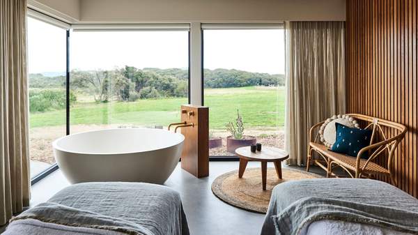 With 200 acres of coastal farmland, a destination spa and seven sandstone suites, Lon Retreat & Spa gives you everything you need to sink into total luxury for a night (or three!). Start your day on walking trails around the farm — or wandering deliciously aimlessly. Look out for native flowers, a veggie garden, World War Two remnants, an old dairy and even a labyrinth on your way. Then head to the spa for mineral water hot tubs, steam rooms and massages with invigorating ocean views. Back in your suite, you'll find yourself surrounded by organic shapes, earthy colours, luxe linen, a king bed and scenery on every side. Find out what else there is to experience on the Bellarine Peninsula with our weekender's guide to Queenscliff and Point Lonsdale.