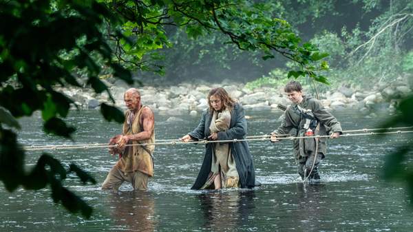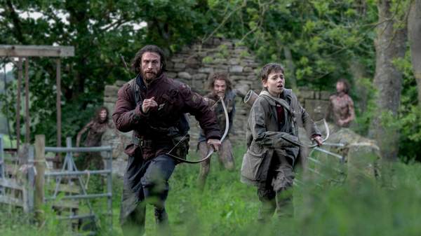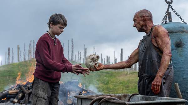 Existence endures in this franchise partly through human persistence in a Britain quarantined from the rest of the planet — and, for the community on Holy Island, through carving out a new normalcy. This northeast spot, which is only connected to the mainland via a sole causeway, is the only place that 12-year-old Spike (Alfie Williams, His Dark Materials) has ever known. But its people have a custom, taking its adolescents across the water to face the infected and prepare for an adulthood that requires venturing beyond the isle's walls for wood for fuel. The town has many traditions, in fact; however, this is where the film meets its protagonists, as Alfie sets off for a day trip with his dad Jamie (Aaron Taylor-Johnson, Nosferatu) while his ailing mother Isla (Jodie Comer, The Bikeriders) remains bedridden.