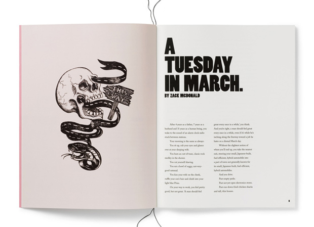Swiss creative lab HappyPets have released a series of tattoo-themed short stories in a long-format zine called Ink. The fictional stories, published in association with KesselsKramer and available in a limited edition print run of 250, are humourous anecdotes that shed some lighthearted light on the practice of permanently marking one's body. As the book's publisher explains, "Sometimes, tattoos act as permanent post-it notes for the ideas and people you love. At other times, they are frivolous creations, made on a whim, as a joke or to appease fashion. Ink explores all of these motivations in an eclectic mix of short stories from international writers."