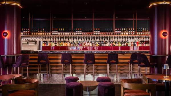 Designers Like Minds Studio have wrapped the room in a rich palette of plums, reds and golds, creating an atmosphere that evokes sitting inside a negroni. Plush velvet banquettes, chrome-edged tables and an ornate walnut-and-marble bar form a warm, enveloping backdrop, while deep-plum leather drapery reimagines the classic stage curtain as a central motif. Soft lighting and an amphitheatre-like seating arrangement set the tone for lively pre-show drinks and intimate nightcaps alike, backed by modern jazz and the occasional DJ or live set.