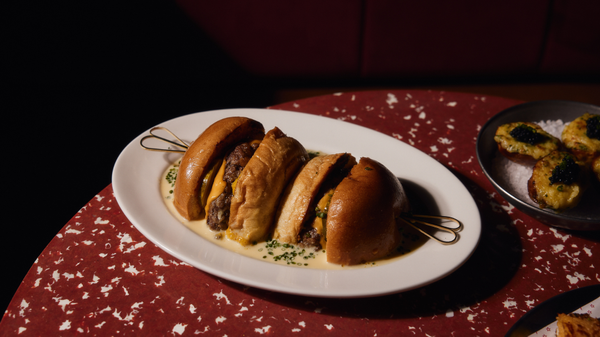 Food follows a similar rhythm. Early in the evening, there's a run of retro-leaning snacks, oysters Kilpatrick, prawn cocktail with 'Marie Razz' sauce, a cheeseburger served with a pool of cheese sauce, and a dippy egg with caviar. That ought to keep you grounded well past midnight.