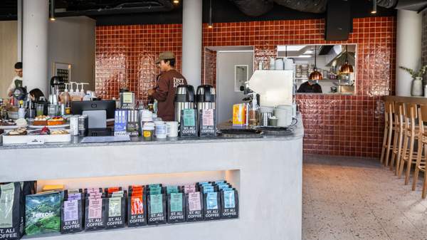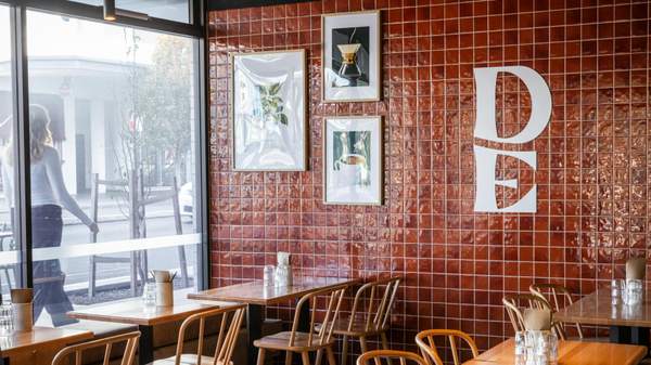 Working closely with JSLJ Architecture, District Eatery's interiors balance the natural and industrial. Think floor-to-ceiling windows that invite loads of light, custom timber joinery and neutral ceramics set against a handmade concrete bar, along with terrazzo-speckled floors and high-gloss burgundy tiles. Bold but welcoming, quick takeaways or extended catch-ups are equally suited to the space.