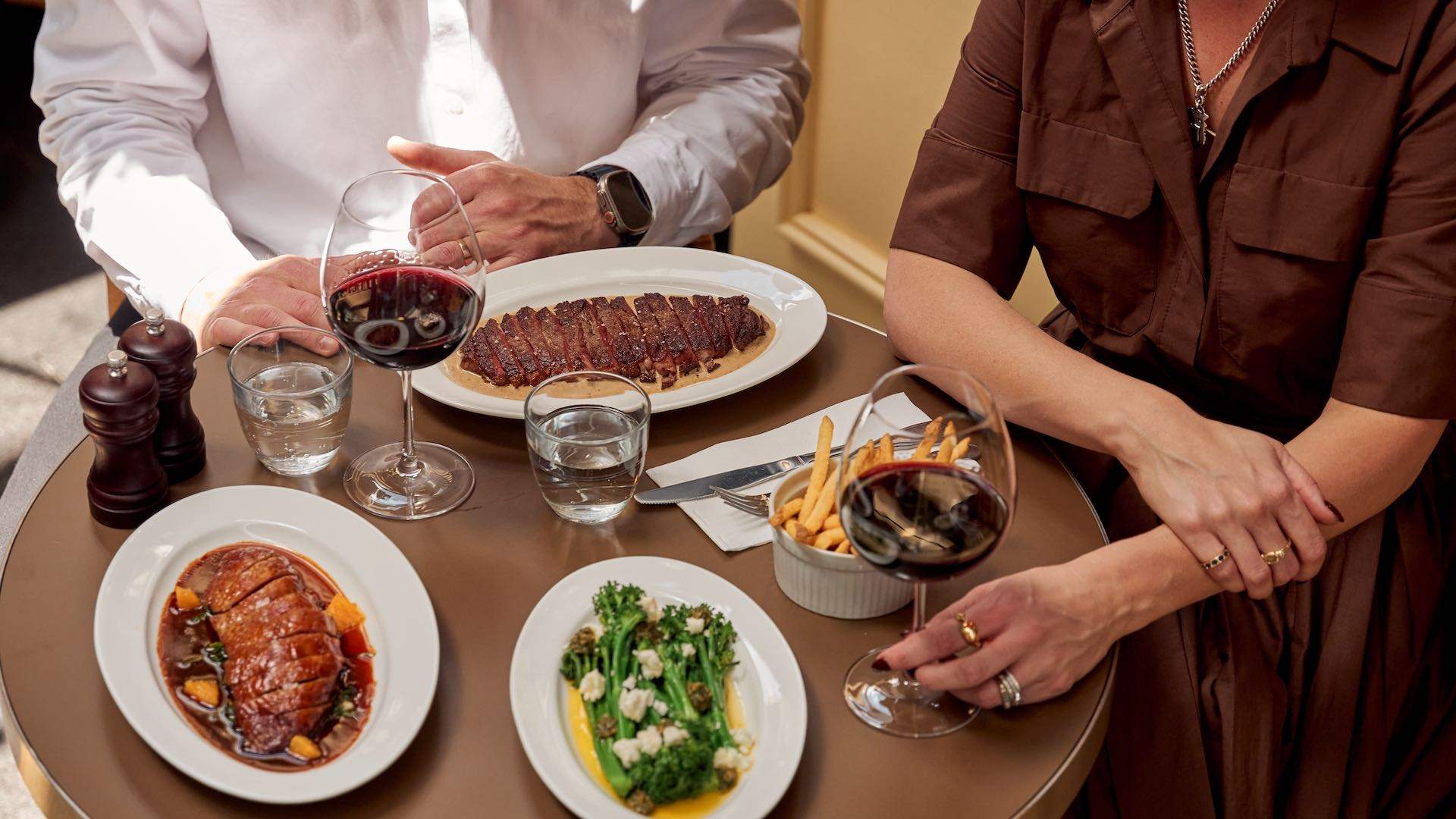 The drinks list follows suit, with French sparkling and champagne, mimosas and spritzes by day, before shifting to classic apéritifs and a considered selection of French wines. A standout is the velvety, Paris-style hot chocolate — designed to be shared between up to four — with the option to add strawberries or a croissant for dipping.