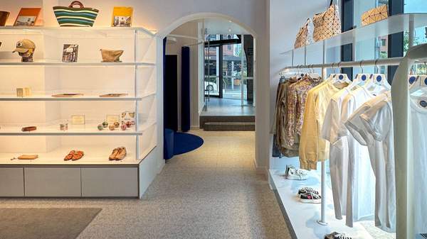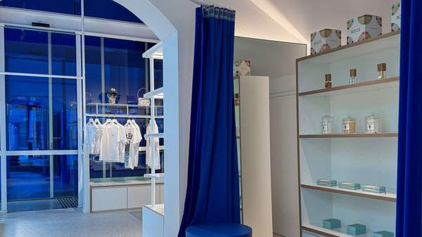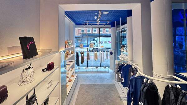 Similar care has been taken in designing the new store. Led by Paddington local and award-winning architect, Shelley Indyk, the Oxford Street location presents as a calming, light-filled space. For those familiar with STILY, the Yves Klein blue returns, adorning a pressed-tin ceiling, plush velvet curtains and custom detailing throughout, contrasting with stark white walls and garment racks that tread the line between fashion boutique and art gallery.