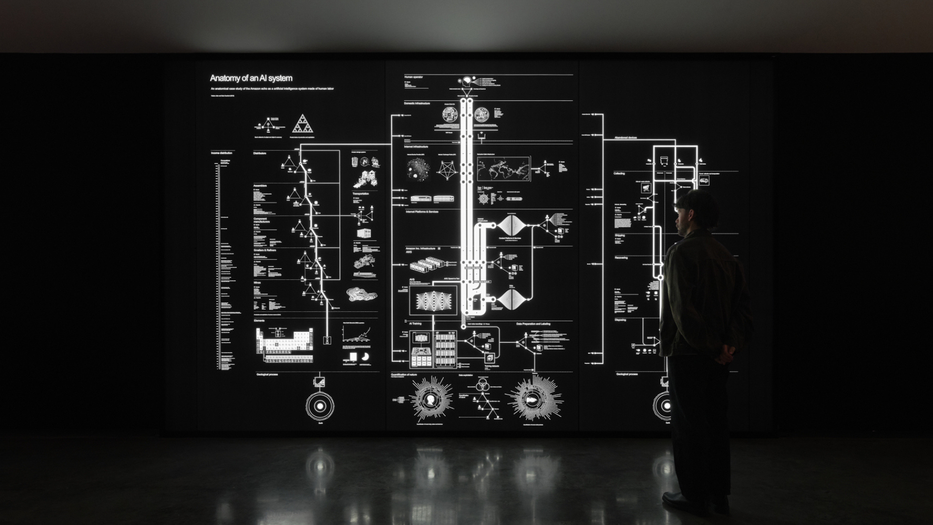A number of international artists (who have been at the forefront of critically engaging with artificial intelligence for decades) have contributed their work, including Angie Abdilla, Kate Crawford, Vladan Joler, Fabien Giraud, Lynn Hershman Leeson, Christopher Kulendran Thomas, Agnieszka Kurant, Trevor Paglen, Hito Steyerl, and Anicka Yi. Their pieces contemplate everything from algorithmic bias and surveillance to the environmental cost of the data economy.