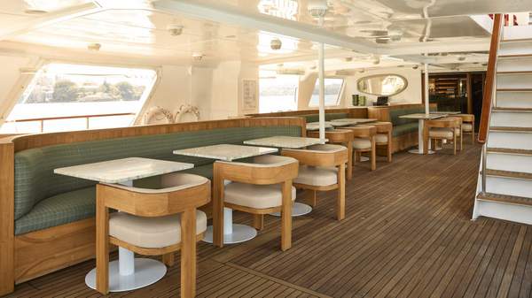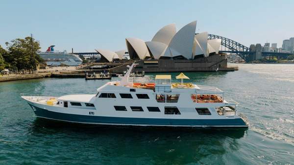 There are harbour views, and there are harbour views. And Solaré, the full-service restaurant, cocktail bar and Mediterranean-style beach club, boasts some serious harbour views — as one might expect, given that it's housed in a 150-foot classic superyacht which sets sail twice daily from King Street Wharf for long lunches, daybed lounging and sunset spritzes.